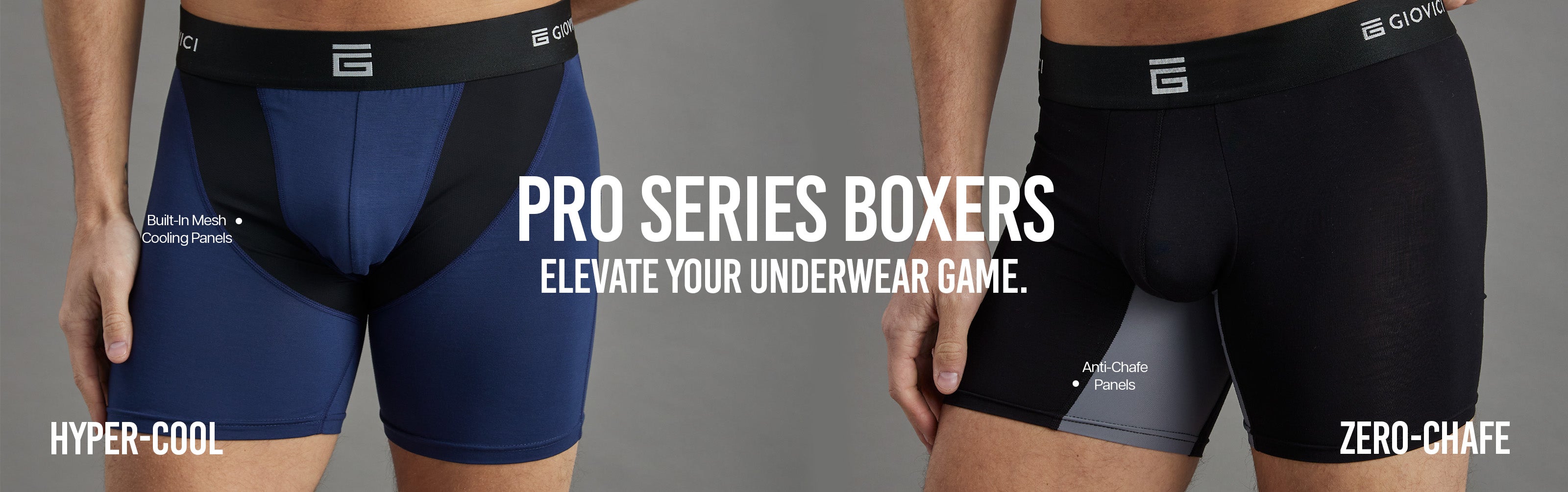 Elevate your underwear game with Giovici Pro Series boxers, two unique designs to combat sweat and chafe giving you the best underwear experience of your life! Both crafted from super soft bamboo viscose and made with care and attention to detail.